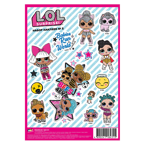 Яркие наклейки с любимыми современными девочками куколками LOL и их аксессуарами. На бумажные наклейки нанесён глиттер. Благодаря его блеску наклейки смотрятся очень стильно, чем порадуют юных модниц.