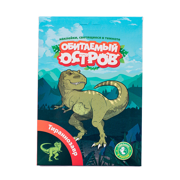 Наборы для поделок «Обитаемый остров» созданы для любителей динозавров. Каждый набор – про одного динозавра. В данном наборе представлена цветная фигурка из картона с изображением Тираннозавра, а также подставка, чтобы фигурка устойчиво стояла на поверхности, брошюра с познавательной информацией о динозавре, светящаяся в темноте наклейка с Тираннозавром 9,5х11см.