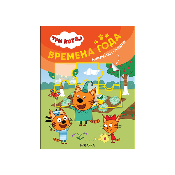 Если ребенок любит собирать пазлы и клеить наклейки, то ему лучшим подарком станет книжка «Три кота. Времена года», где все эти увлечения будут собраны воедино. На каждом развороте книжки ребенок найдет увлекательные задания, а также сможет из наклеек собрать красочный пазл. Книжка создана по мотивам мультипликационного сериала «Три кота». Ребенок не только встретится на страницах книжки со своими любимыми персонажами, но и вместе с ними проведет время за выполнением интересных и забавных заданий, расширяющих кругозор и тренирующих логическое мышление. Обложка – мягкая глянцевая, возрастных ограничений нет.