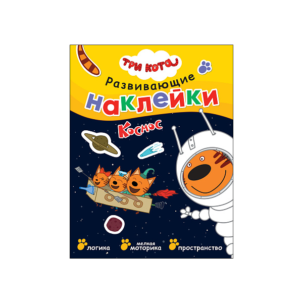 Детей, который любят мультик «Три кота» точно порадует этот подарок. Развивающая книга о космических приключениях котят создана, чтобы научить малышей ориентироваться в пространстве, решать задачи на сообразительность. А чтобы ребятам было еще интереснее, каждое задание сопровождают яркие наклейки, которые нужно правильно разместить на странице.