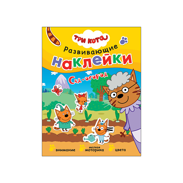 Мультипликационный сериал «Три кота» в ненавязчивой форме знакомит малышей с окружающим миром и правилами поведения. Созданная по его мотивам книжка «Сад-огород» содержит набор увлекательных заданий по огородной тематике, из нее ребенок узнает, какие растения растут в огороде, как защитить сад от птиц и вредителей, как вырастить хороший урожай. Закрепить знания помогут наклейки, которые ребенок разместит в разделах задания. Занятия с книгой развивают логику, мышление и внимание.
