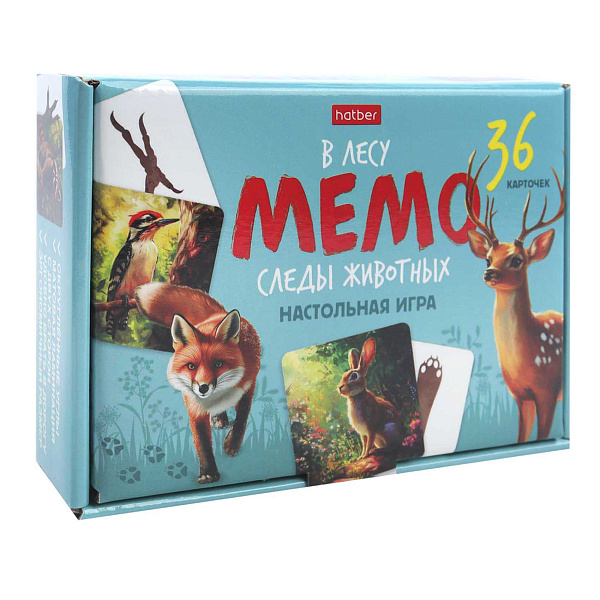 Настольная игра Hatber «Мемо. Следы животных» представляет собой набор из 36 карточек, включающий 18 пар с изображениями лесных животных и их следов. Задача игроков – найти подходящую пару, сопоставляя картинки животных и отпечатки лап. Игра подходит для детей от 3 лет и рассчитана на компанию от 2 до 6 человек, продолжительность – около 10 минут.