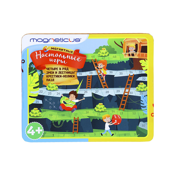 Игра настольная Змеи и лестницы-Четыре в ряд-Крестики-нолики-Пазл магнитная с 4лет