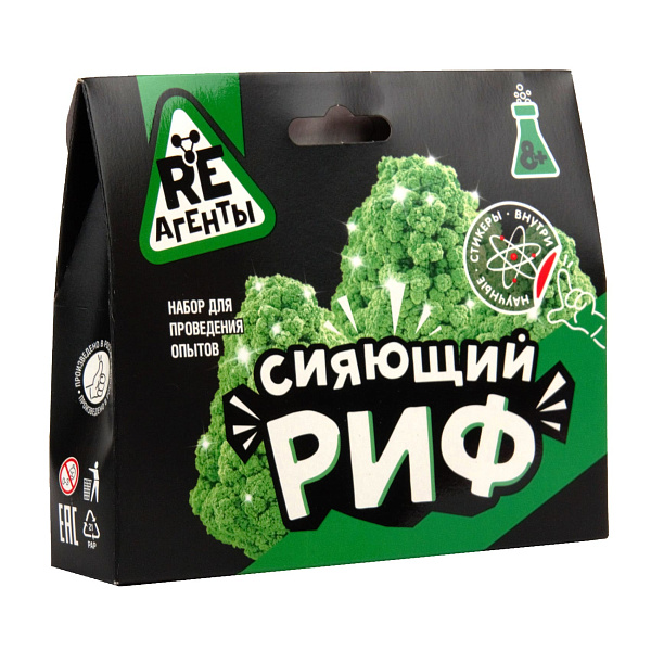 «Сияющий риф» – это прекрасный способ развлечь ребенка и совместно провести увлекательный опыт по выращиванию кристаллов. Небольшой набор предназначен для выращивания кораллового рифа в домашних условиях в течение нескольких часов. Подойдет в том числе для нетерпеливых малышей, которые не смогут долго ждать результата. Постепенное появление кристаллов на поверхности картонного каркаса увлечет ребенка, а готовый результат приведет в восторг, тем более сверкающим коралловым рифом, украшенным блестками, можно похвастаться перед родными и друзьями. Ребенок будет увлечен экспериментом, разовьет свой интеллект, расширит кругозор.