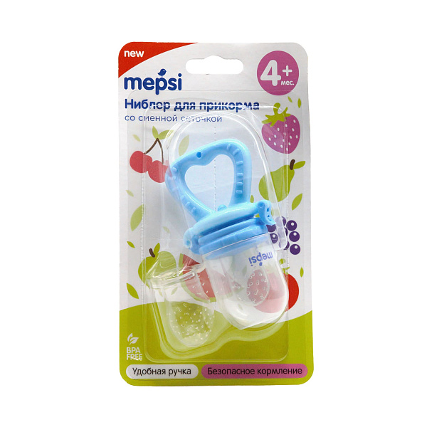 Голубой ниблер MEPSI для введения прикорма позволит вам безопасно и легко познакомить малыша с твердой пищей. Силиконовая сеточка этого ниблера не позволит ребенку проглотить большой кусочек еды и подавиться.