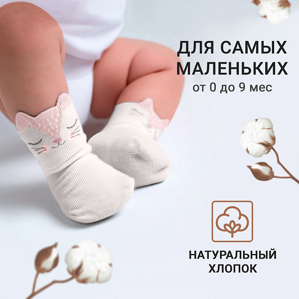 Носки Arti хлопковые с мордочкой котенка светло-молочные