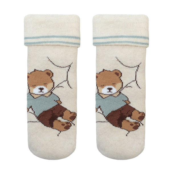 Носки Arti хлопковые с рисунком мишки и голубыми полосами молочные