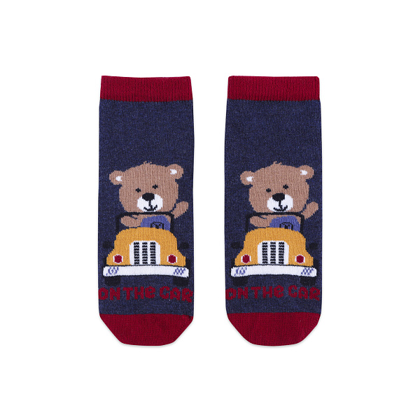 Подарите малышу тепло, мягкость и уют вместе с утепленными носками ARti. В составе ткани использовано сочетание хлопка 80%, полиамид 18% и эластан 2%. Материалы обеспечивают мягкость изделий, хорошо пропускают воздух и повышают эластичность ткани. Носки выполнены в сочетании темно-синего и красного цветов и украшены контрастным рисунком мишки на машине. Тонкая красная резинка по верху носка мягкая и эластичная, она не дает изделию сползать с ноги и не давит на кожу. Рекомендовано для детей младшего возраста.