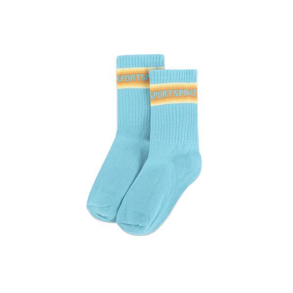 Носки для девочки сшиты из мягкой смесовой ткани, в составе которой 80% хлопка, 18% полиамида и 2% эластана. Такая ткань обладает хорошей износостойкостью и долговечностью, прекрасно переносит многочисленные стирки и быстро высыхает. Преимущественно натуральный состав ткани позволяет коже дышать, а добавки из синтетического волокна обеспечивают хорошую эластичность и износостойкость. Однотонные носки украшены под резинкой цветными полосками с повторяющейся надписью «Sport». Мягкие комфортные носки подойдут для дома, походов в школу или детский сад, а также для прогулок.
