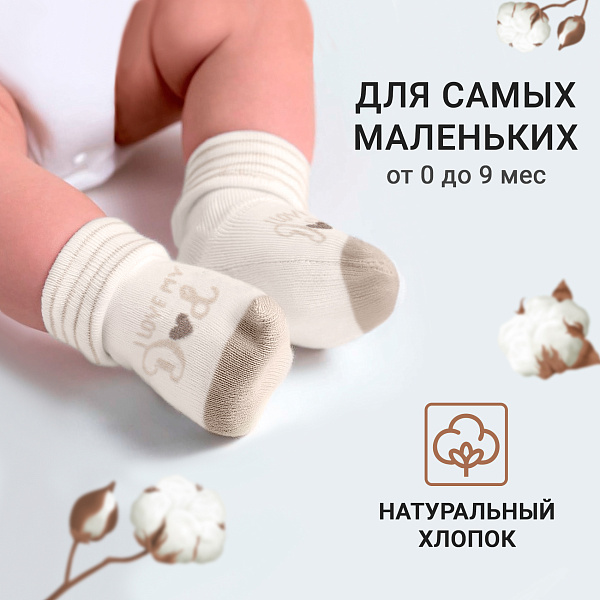 Носки выполнены из натуральных материалов, что гарантирует отличную воздухопроницаемость, мягкость и эластичность. Благодаря эластичным волокнам носочки хорошо тянутся, легко надеваются и идеально сидят на маленькой ножке, не сдавливая ее. Материалы прошли проверку на качество и безопасность, что особенно важно для нежной детской кожи.