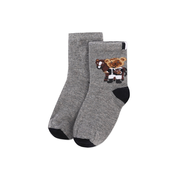 Носки для маленького мальчика украшены изображениями забавных медвежат. Они заинтересуют ребенка и поднимут ему настроение, станут полезным дополнением повседневного гардероба. Мягкая резинка исключает нежелательное сползание, не врезается в кожу. Пятка и нос окрашены в практичный цвет. Единственный соединительный шов в области пальцев выполнен аккуратно, не вызывает дискомфорта.