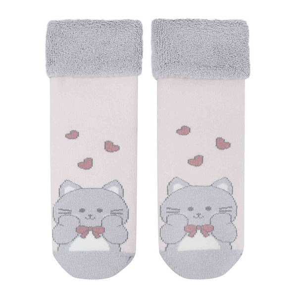 Носки Arti теплые хлопковые с принтом котенка с сердечками розовые