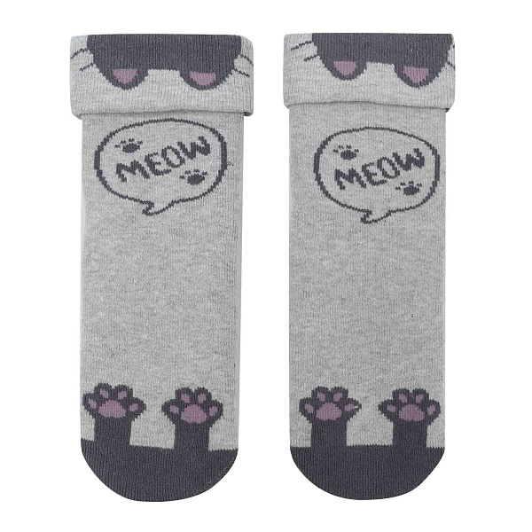 Носки Arti теплые хлопковые с принтом лапок и ушек котика серые