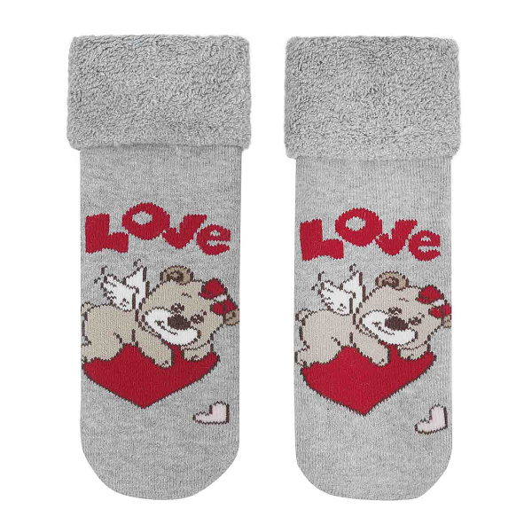 Носки Arti теплые хлопковые с принтом мишки с сердечком серые