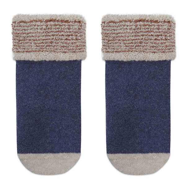 Носки Arti теплые с бежевым отворотом и антискользящими элементами темно-синие