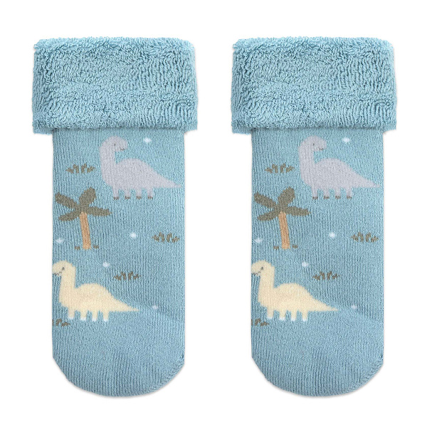 Носки Arti теплые с отворотом и изображением динозавров голубые