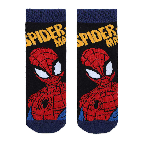 Утепленные носки «Человек-паук» изготовлены из смеси натурального хлопка с синтетическими материалов. Они имеют яркий дизайн с изображениями супергероя. Носки подходят для повседневного ношения в прохладную погоду. Эти носки сохраняют тепло на ногах ребенка. Противоскользящие точки на подошве предотвращают падения на скользких поверхностях. Родители легко стирают носки в стиральной машине. Материал носков не теряет форму после стирки.