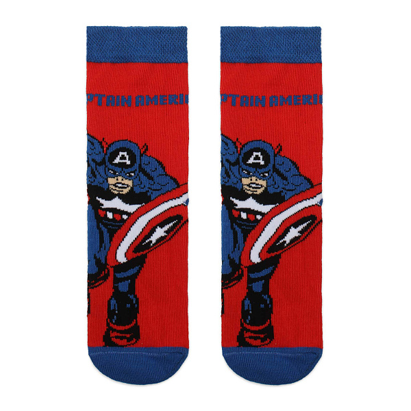 Яркие носки для мальчика с изображением Капитана Америки станут стильным и веселым дополнением к детскому гардеробу. Контрастное сочетание красного и синего цветов привлекает внимание и отлично подойдёт юным поклонникам супергероев. Динамичный принт с героем из вселенной Marvel подарит малышу хорошее настроение на весь день.