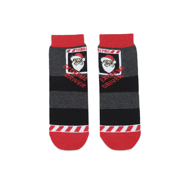 Модель ориентирована на детей младшего возраста. Носки темно-серого цвета вызовут восторг у малыша из-за оригинального изображения Деда Мороза и контрастного сочетания цветов. Изделие имеет широкую резинку, не препятствующую кровообращению. Эластичный трикотаж на основе хлопка, полиамида и эластана обеспечивает плотное облегание на ноге и естественный воздухообмен. Материал хорошо сохраняет тепло, устойчив к истиранию и износу. Такие носочки добавят радости и ожидания новогодней сказки, а также сохранят ноги в тепле и сухости.