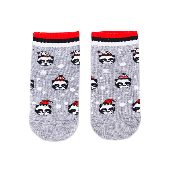 Ткань серого цвета с рисунком в виде забавных панд в шапках. Они выглядят мило и обязательно понравятся ребенку. Носки подойдут для повседневного использования, например, в детский сад, на прогулку или на спортивные занятия.