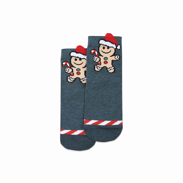 Порадовать ребенка дошкольного возраста помогут носки с тематическим дизайном. Рисунки и цветовая гамма на них подобраны таким образом, чтобы напомнить о новогодних праздниках. Дети будут в восторге от изображения смешного пряничного человечка в красном колпаке, получат массу позитивных эмоций.