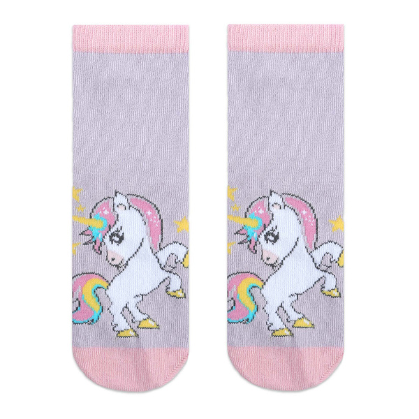 Носки Katamino хлопковые с изображением единорога и розовыми вставками серые
