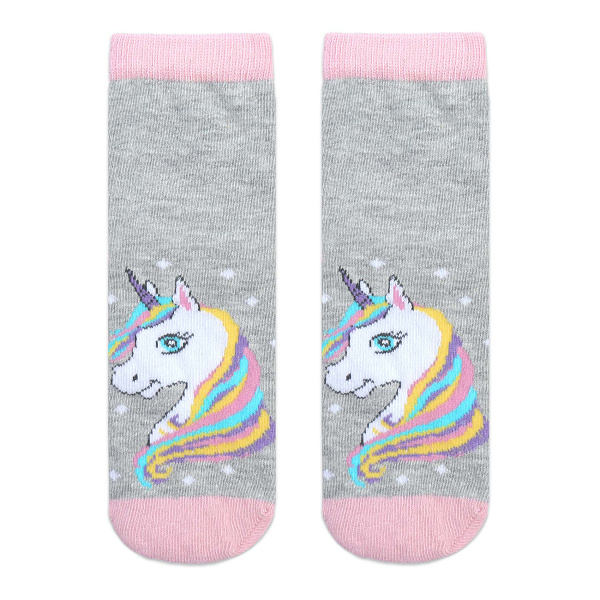Носки Katamino хлопковые с розовыми пятком и носком с изображением единорога серые