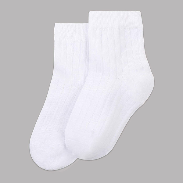 елые детские носки с классическим ребристым узором создают простой и аккуратный образ. Ткань приятная к коже, мягкая и хорошо пропускает воздух, что помогает ногам оставаться сухими и в комфорте в течение всего дня.