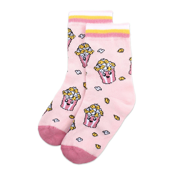 Носки для девочки «Попкорн» понравятся девочке. Они выполнены в розовом цвете и украшены принтом с изображением попкорна. Носки изготовлены из 56% хлопка, 40% полиамида и 4% эластана.