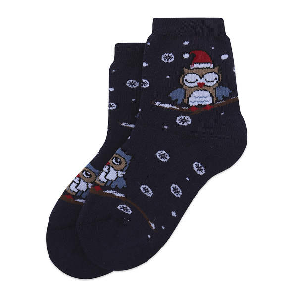 Синие носки с рисунком сов понравятся девочкам. Хлопок в составе позволяет коже дышать. Полиамид делает ткань прочной и долговечной. Эластан помогает носкам облегать ногу, не сдавливая ее. Широкая резинка не давит на лодыжку, не сползает и не оставляет следов. Вязка плотная, сохраняет тепло.