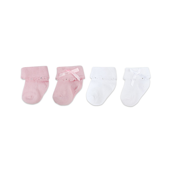 Нарядные носочки чудесно подойдут под праздничный наряд маленькой принцессы. Ткань на основе комбинации хлопка, полиэстера и эластана мягкая и приятная к телу, хорошо пропускает воздух и дарит комфорт ногам. Верх носков эластичный, плотная резинка не дает носкам сползать, но при этом не давит на кожу. Верх носков украшен отворотом, украшенным стразами, и аккуратным бантиком в тон изделию. Элегантные носки подойдут как для повседневной носки, так и для праздников. Рекомендовано для детей младшего возраста.