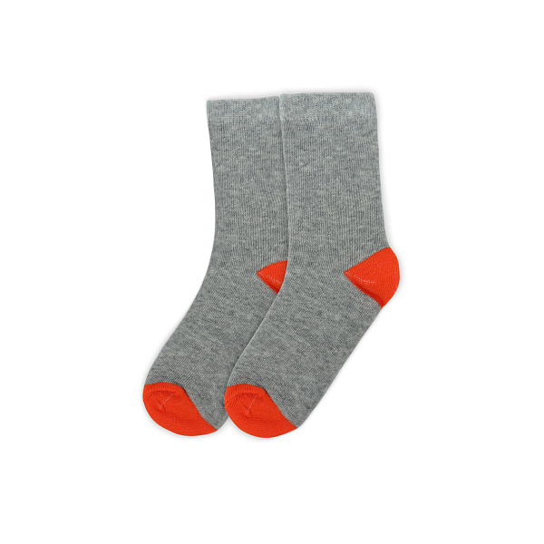 Тонкие хлопковые носки в темно-сером цвете в сочетании с оранжевой пяткой и носком подойдет как для спортивных игр, так и для повседневных образов. Отсутствие дополнительных узоров делает носки универсальным предметом гардероба для мальчиков и девочек. Хлопок в составе мягок и приятен на ощупь, подходит даже для чувствительной кожи. Укрепление полотна полиэстером делает изделие износостойким и повышает его прочность. Благодаря нитям эластана резинка носков мягкая и плотно прилегает, предотвращая сползание паголенка.