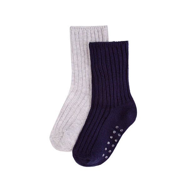 Утепленная модель детских носков из хлопка без добавления шерсти для чувствительной нежной кожи малыша. В упаковке представлены 2 пары носков для стопы 14-16 размера в глубоком синем и светло-сером меланжевом цвете. Фактура полотна выполнена вязаным узором в широкую резинку. Подошва оформлена прозрачными противоскользящими элементами. Натуральный хлопок приятен и не вызывает аллергии, благодаря плотному полотну держит тепло, но не препятствует воздухообмену, позволяя коже ног дышать. Укрепить носки и продлить срок их службы помогает находящийся в составе нейлон. Носки чудесно держат форму и плотно облегают голень, а резинка не растягивается со временем благодаря добавлению эластана.