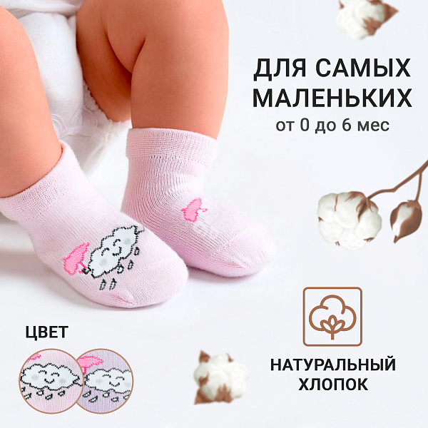 Эти симпатичные лавандовые носочки понравятся не только малышу, но и заботливым родителям. Ткань носков пошита из смеси натурального хлопка (75%), полиэстера (22%) и эластана (3%). Такое сочетание ткани не только обеспечивает хороший воздухообмен, но и приятное прилегание к нежной коже и эластичность материала – носочки плотно сядут на детскую ногу, но не будут сдавливать ее. Натуральные виды ткани подойдут для малышей с чувствительной кожей. Особый комфорт ребенку дарят гладкие швы. Резинка носков плотная, но эластичная, не сдавливает кожу. Завершают дизайн забавное облачко на одном носке, и надпись на другом. Рекомендовано для детей младшего возраста.