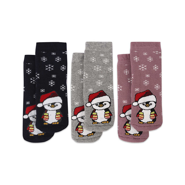 Носки UCS новогодние теплые принт пингвин в шапочке в ассортименте