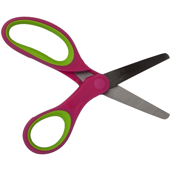 Неотъемлемый атрибут для рукоделия. Подходит начинающим. Тупые концы снижают риск получения травмы при неосторожном обращении. Высокое качество материалов, удобные эргономичные ручки сделают процесс использования ножниц приятным. Яркий цвет ручек не позволит ножницам потеряться среди бумаги или ткани.