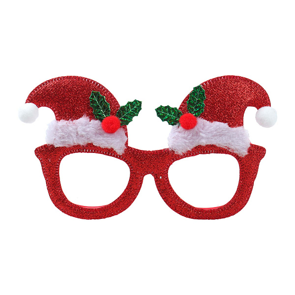 Очки в ярком красном цвете - яркий и забавный аксессуар из пластика, идеально подходящий для создания новогоднего образа. Рамки очков украшены двумя красными блестящими колпаками Санты-Клауса с белой меховой отделкой, пушистыми помпончиками и зелеными блестящими листьями с красным ягодным акцентом. Легкие и удобные в носке, эти очки станут отличным украшением для праздничных вечеринок, фотосессий и карнавальных событий.