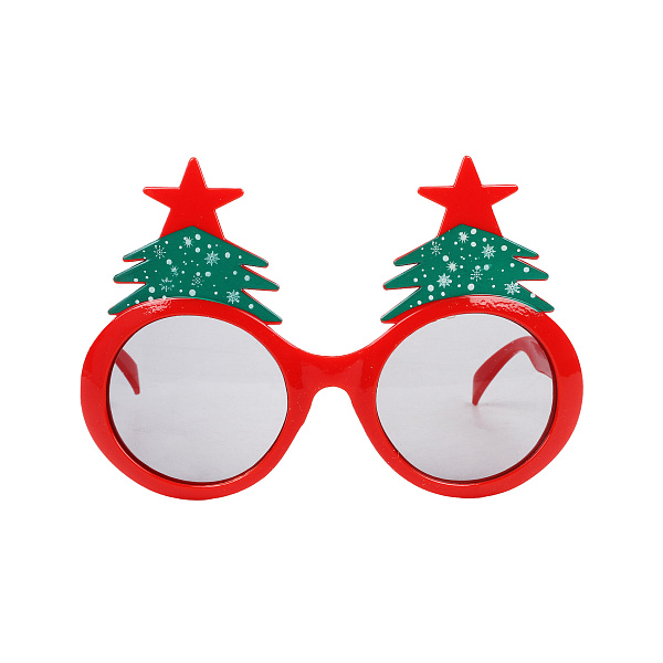 Если хотите сделать праздничный наряд ребенка еще сказочнее и оригинальнее, то красные фигурные очки придутся кстати. Форма очков выполнена в виде новогодних елок, украшенных снежинками и красными звездами на верхушке. Пластиковые душки комфортно сидят на ушах и удерживают очки на голове. Прозрачные затепленные стекла делают очки похожими на солнцезащитные. Аксессуар порадует ребенка и станет завершением новогоднего костюма.