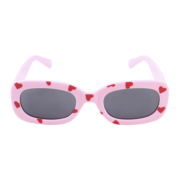 Солнцезащитные очки для девочек выполнены в нежно-розовом цвете с очаровательным дизайном, украшенным красными сердечками по всей оправе. Этот яркий и стильный аксессуар добавляет игривости и выразительности любому образу.
