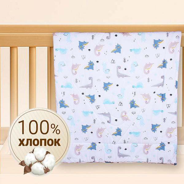 Дизайн с забавными динозавриками добавит элемент веселой игры в детскую комнату и будет радовать глаз маленького владельца. Одеяло подходит для использования в кроватке или коляске, а также для укрытия малыша во время путешествий.