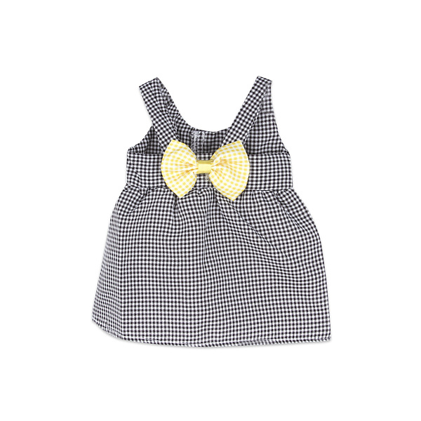 Изящный кукольный наряд, который внесет разнообразие в игровые сценарии вашего ребенка. Сарафан изготовлен из текстиля. Его серый цвет гармонично дополняется ярким желтым бантом, создавая стильный и очаровательный образ.