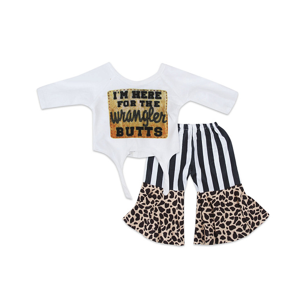 В стильный комплект одежды для кукол входит элегантный белый топ идеально сочетающийся с джинсами клеш, украшенными полосатыми и леопардовыми вставками. Эти детали придают всему образу экстравагантность и стиль.