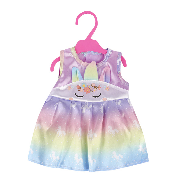 Блестящее платье для любимого пупса станет приятным сюрпризом для любой девочки. Новый наряд привлекает внимание радужной цветовой гаммой, оригинальной отделкой и тематической вышивкой. Фантазийный дизайн вызовет искренний восторг. Изделие свободного кроя фиксируется на спине с помощью липучки. Переодеть куклу не составит труда.