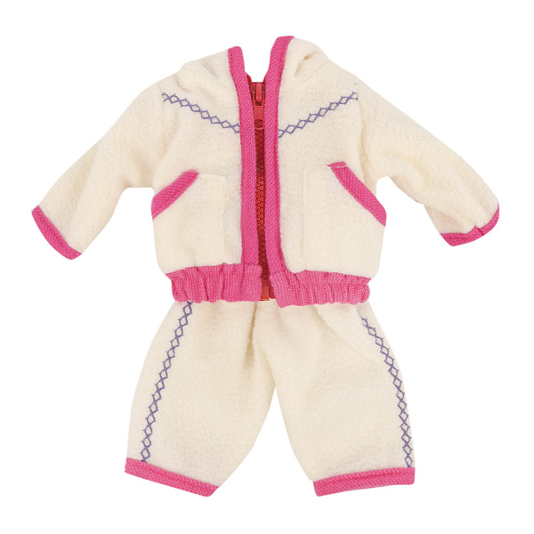Теплый спортивный костюм для пупса позволит внести разнообразие в игры детей старше 3 лет. Модель является точной копией обычной одежды, имеет карманы, капюшон, застежку в виде молнии. Украшением служит контрастная отделка и геометрические узоры.