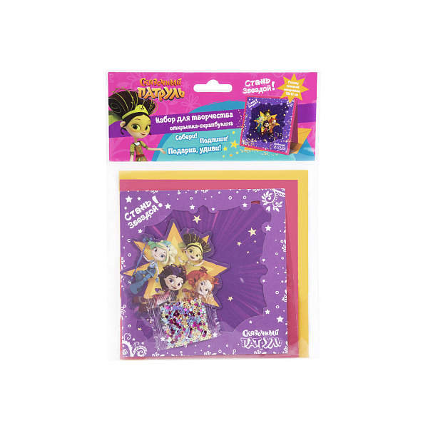 Скрапбукинг – один из новых видов творчества, который быстро набирает популярность. Детский набор для скрапбукинга уже включает все, что нужно для успешного изготовления проекта. Для работы с набором не нужны дополнительно ни ножницы, ни клей, ни иголки, что позволяет ребенку старше 5 лет играть с ним самостоятельно, и, приложив необходимую усидчивость и аккуратность, получить красочную объемную открытку с изображением любимых мульт-героев. В набор входят детали из картона и мягких полимерных материалов, инструкция, конверт для упаковки.