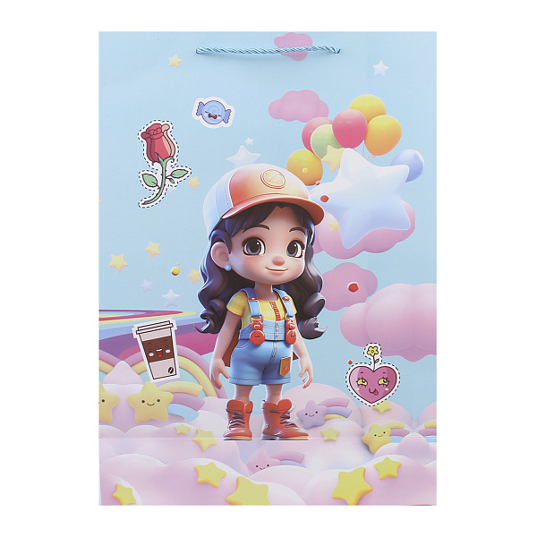 Яркий рисунок с изображением девочки, единорога и воздушных шариков делает пакет неотъемлемой частью любого праздника. Размер 41х30х12 см позволяет упаковать даже крупный подарок, сохраняя его в целости.