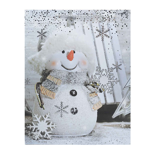 Пакет подарочный Lanson goods с изображением праздничного снеговика светло-серый 32х26х10см