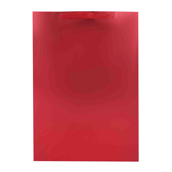 Подарочный пакет — это яркий и стильный пакет из глянцевой металлизированной бумаги в насыщенном красном цвете, идеально подходящий для упаковки подарков разных размеров к любым праздничным событиям.