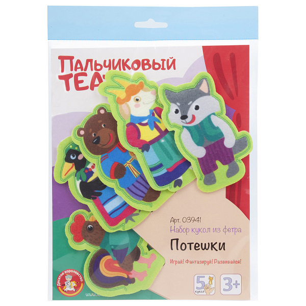 Устроить веселое представление, предложить малышу увлекательную игру легко, располагая миниатюрными куколками из фетра. Их достаточно надеть на пальцы, чтобы окунуть малыша в мир сказок. В комплект входят волк, коза, медведь, петух и сорока. С ними можно придумать увлекательные и занятные истории, которые понравятся ребенку. Это положительно влияет на фантазию ребенка, развивает фантазию и логическое мышление, память и речь, активирует моторику рук.