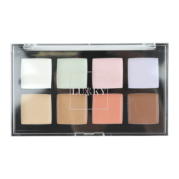 Набор состоит из пластиковой палетки, в которой в отдельных отсеках расположены 8 консилеров разного цвета, которые обладают различными функциями: осветляют, маскируют несовершенства и корректирует форму лица. Палетка закрывается прозрачной откидной крышкой, которая фиксируется защелкой.